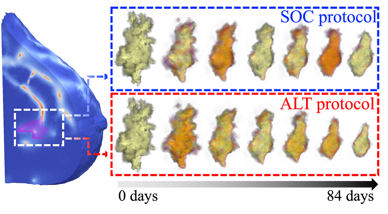 In this project, we employed digital twins (i.e., mathematical models that provide virtual representation of individual patients and predict the changes at future time points) to systematically evaluate individual triple-negative breast cancer patient’s response to different neoadjuvant chemotherapy regimens, thereby patient-specifically optimizing treatments.
